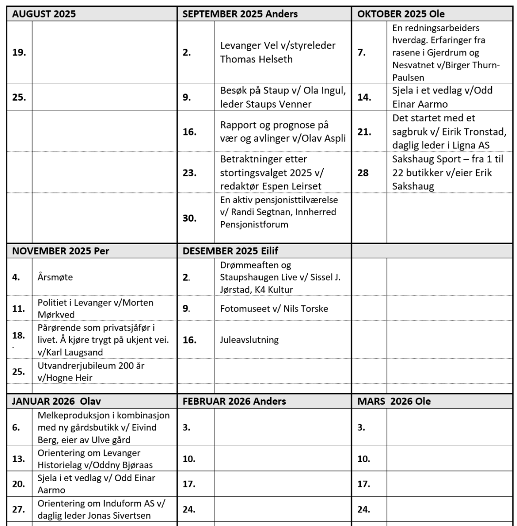 Møteoversikt for de nærmeste møtene ligger nederst på denne siden. Program for hele året er vist nedenfor.