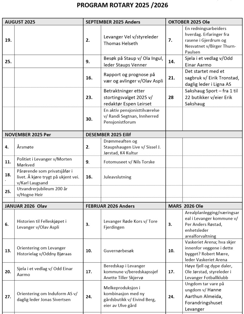 Program for avholdte møter i Rotaryåret 25/26 ser du her: